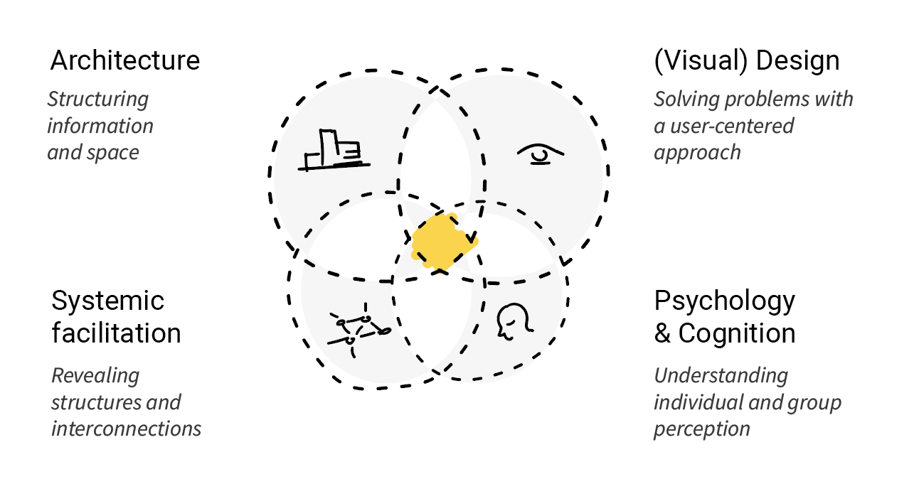 Yulia Kryazheva, FounderTrained as an architect, Yulia has worked on diverse projects — from developing online platforms and facilitating workshops to designing complex visual systems, shaping strategy, and leading roundtables and conferences. Her cross-disciplinary experience led her to develop a distinctive approach that combines structured thinking, visual clarity, and strategic facilitation.